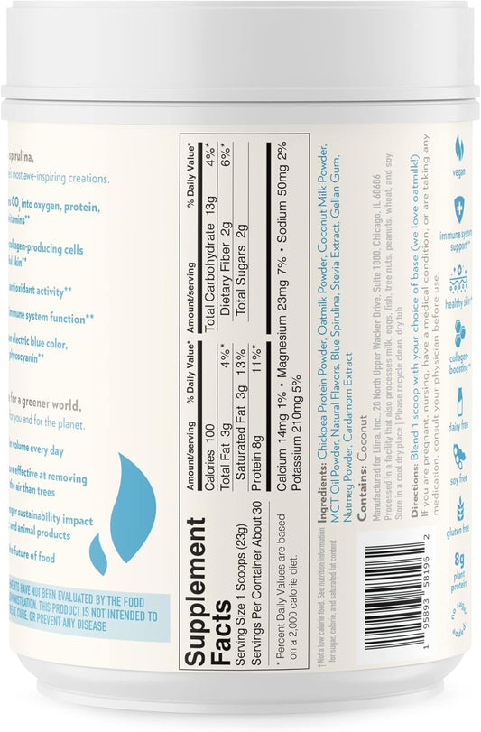 Blue Spirulina Powder: Vegan Collagen Boost, 1000mg per Serving, Vanilla Coconut Superfood, Dairy Free, No Sugar (Bulk Tub, 15 Servings)