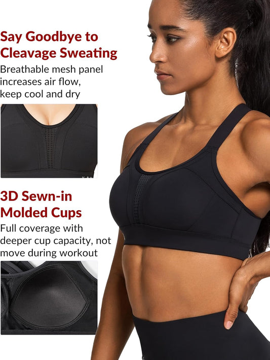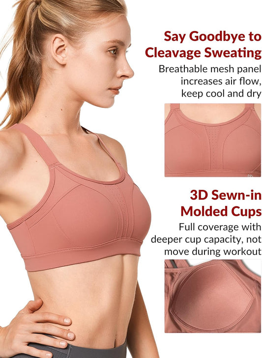 High Support Front Closure Sports Bra for Large Bust Women Running - Yvette High Impact Supportive Bra