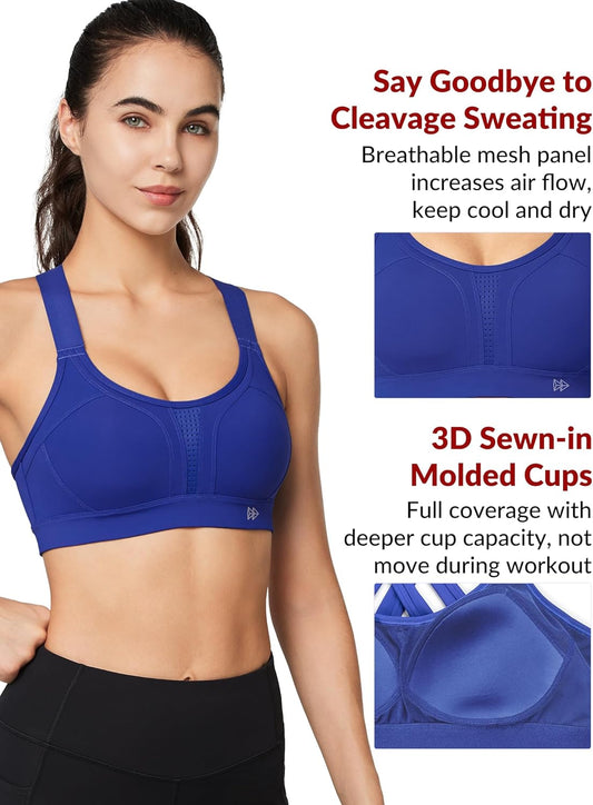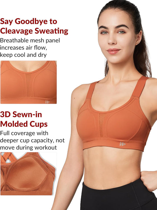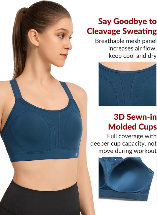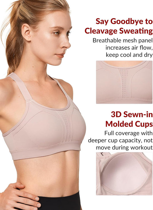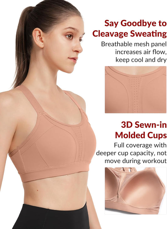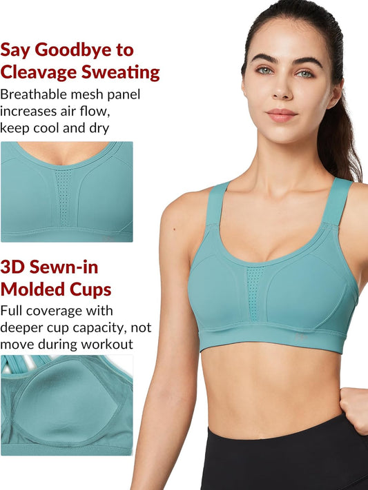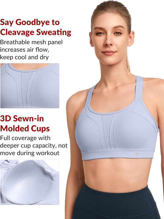 Adjustable Criss Cross Back High Impact Sports Bra for Large Bust - Full Support & No Bounce