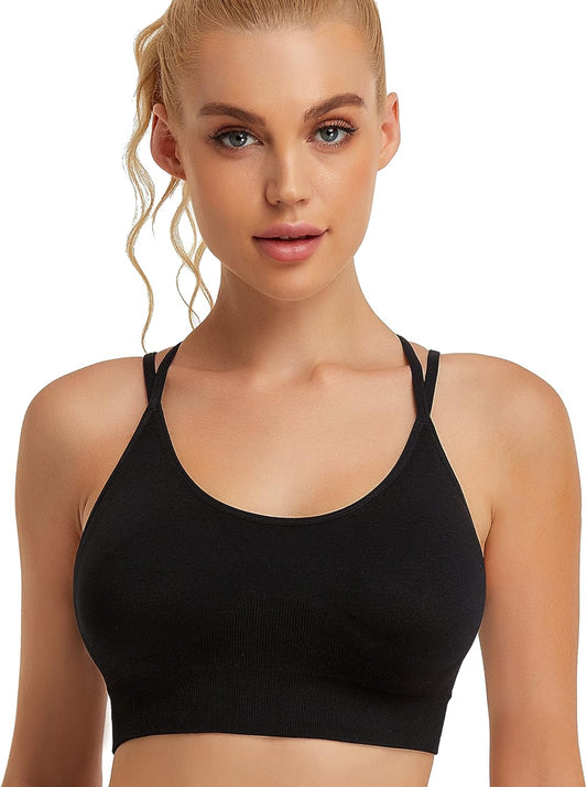 Women's Yvette Yoga Sports Bra - Light Support, Wireless, Padded, Cute Crop Tank Top - Soft and Comfortable