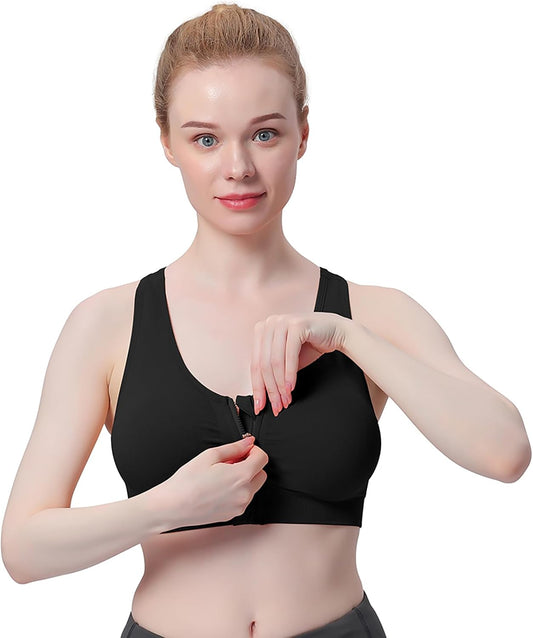 Women's Wireless Zip Front Post-Surgery Sports Bra for Yoga and Active Wear by WANAYOU