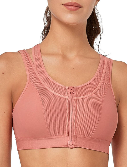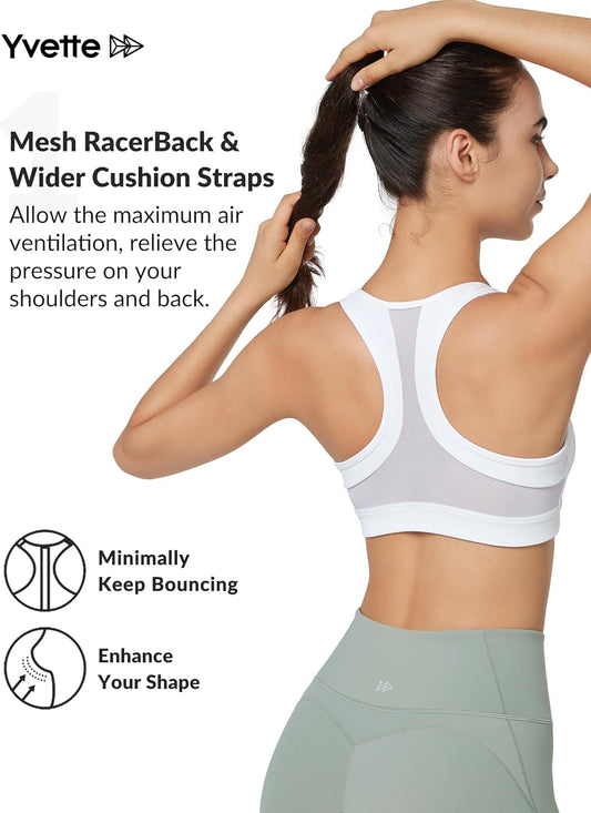 Yvette High Impact Mesh Zip Front Sports Bra with Double Deck Straps for Women Running