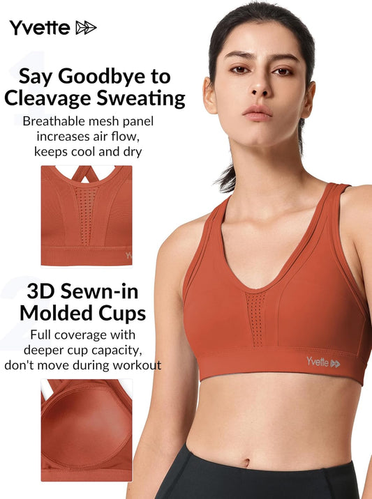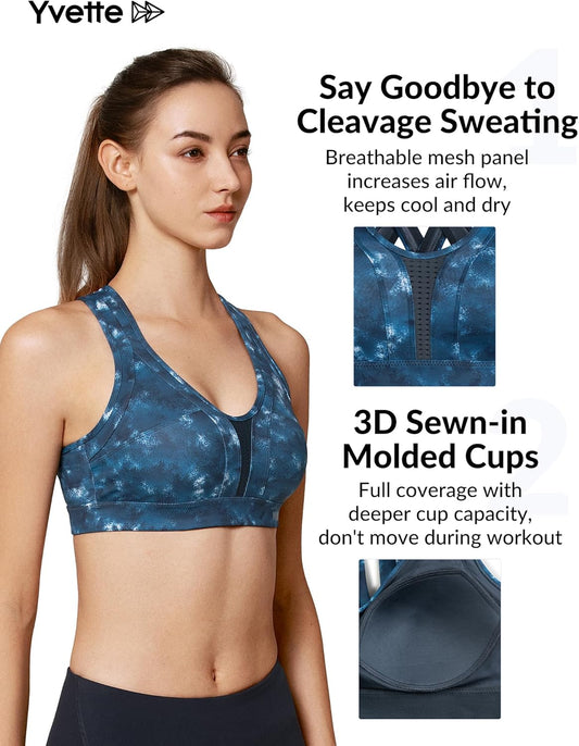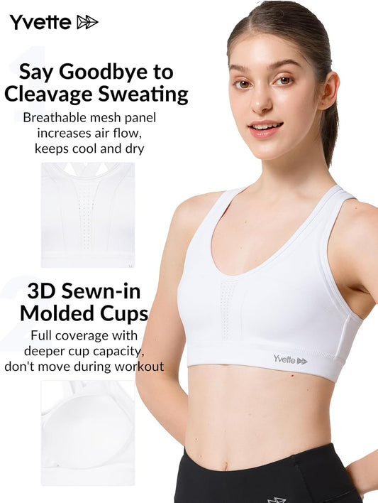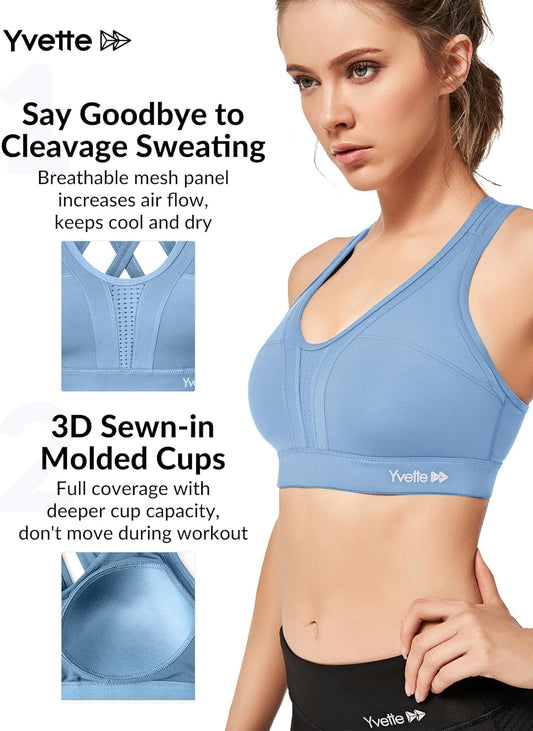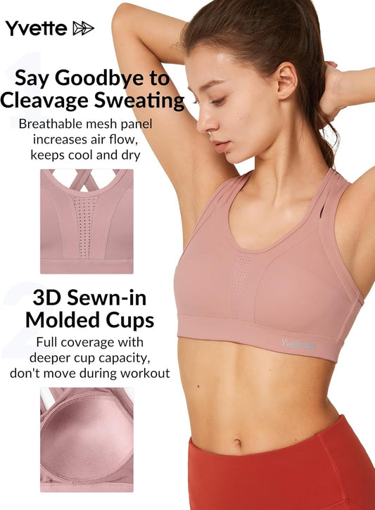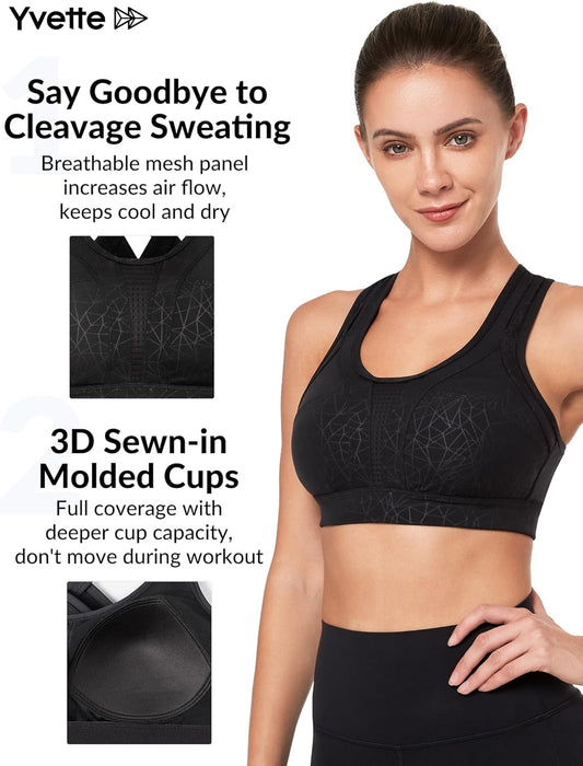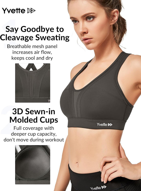 Yvette High Impact Sports Bra for Women with Adjustable Straps - Ideal for Running and Large Bust Support