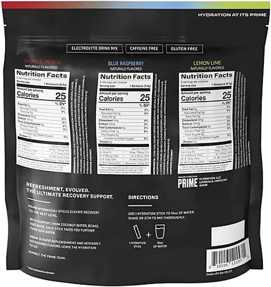 QT LIMITED Prime Hydration+ Sticks Variety Pack - 30 Count Assortment | Electrolyte Drink Mix | Easy Open Single-Serving Sticks | Caffeine Free | Gluten Free