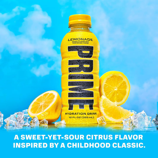 Prime Hydration Lemonade: Electrolyte-Enhanced Sports Drink with BCAAs, B Vitamins, and Antioxidants - 12 Pack of 16.9 oz Bottles