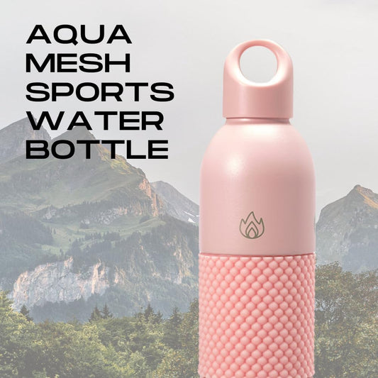 18 Oz Aqua Mesh Insulated Sports Water Bottle with Screw Top Lid - Leak Proof Stainless Steel - Handle, Spill Proof - Thermos for Gym, Home, Office - Blush