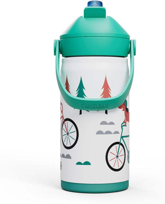 Insulated Stainless Steel 12oz CamelBak Thrive Kids Water Bottle with Flip Straw - Biking Dogs Design