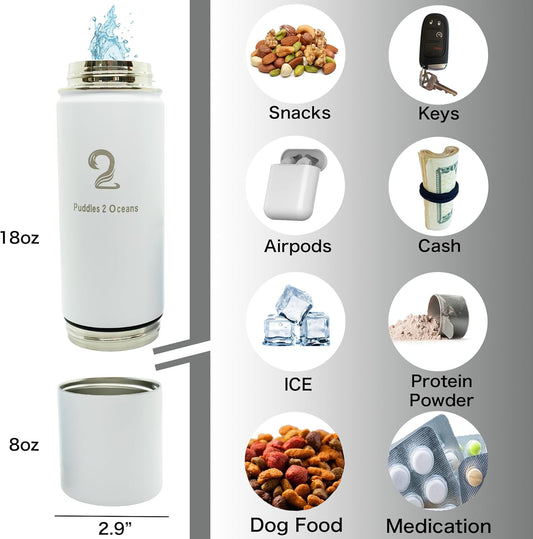 Insulated Stainless Steel Water Bottle with Storage - BPA Free, Leak Proof, Double Wall Tumbler for Gym, Hiking, School - 3 Lid Options, Travel Friendly for Kids & Adults