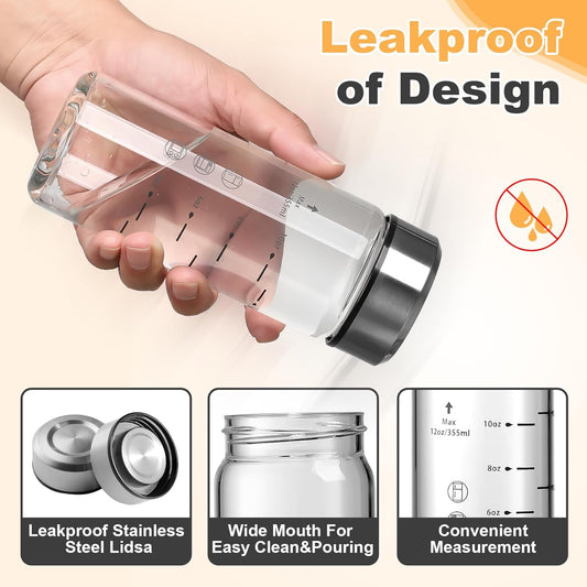 4 Pack 12oz Wide Mouth Glass Juice Bottles with Lids - Perfect for Juicing, Smoothies, Infused Water - BPA Free, Leakproof, Reusable - Borosilicate Glass