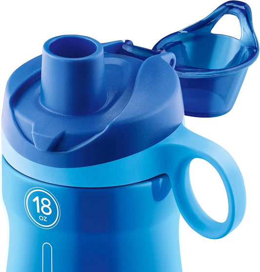 2-Pack Pogo Plastic Water Bottles with Carry Handle - BPA Free, Reusable, Dishwasher Safe - Ideal for Travel, School, Outdoors, Gym - 18oz, 32oz