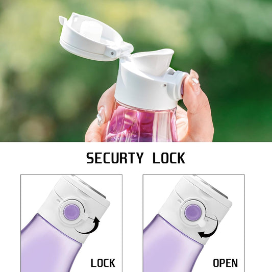TSURUYA 24oz Tritan Water Bottle with Safety Lock Lid for Travel, Gym - BPA Free, Leakproof, Portable Handle - Clear Plastic Sports Bottle