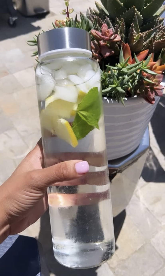 Blue Glass Water Bottle with Bamboo Cap - Eco-Friendly Reusable Bottle