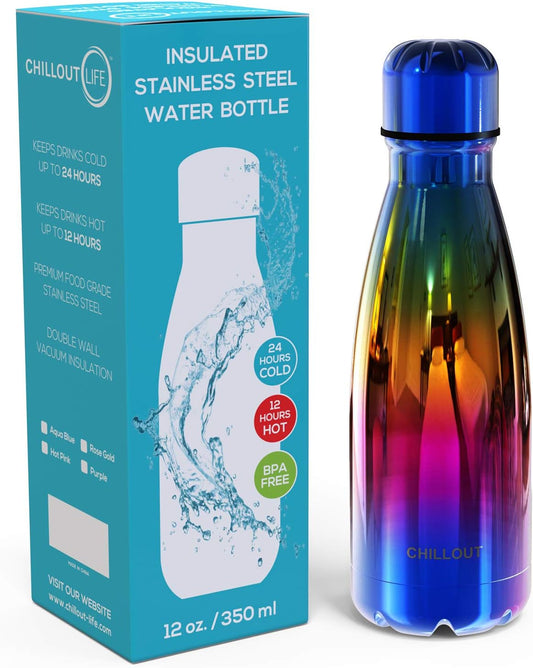 12 oz Double Wall Insulated Stainless Steel Water Bottle for Kids School - BPA Free Metal Sports Bottle for Cold and Warm Drinks - Boys, Girls, Women - CHILLOUT LIFE