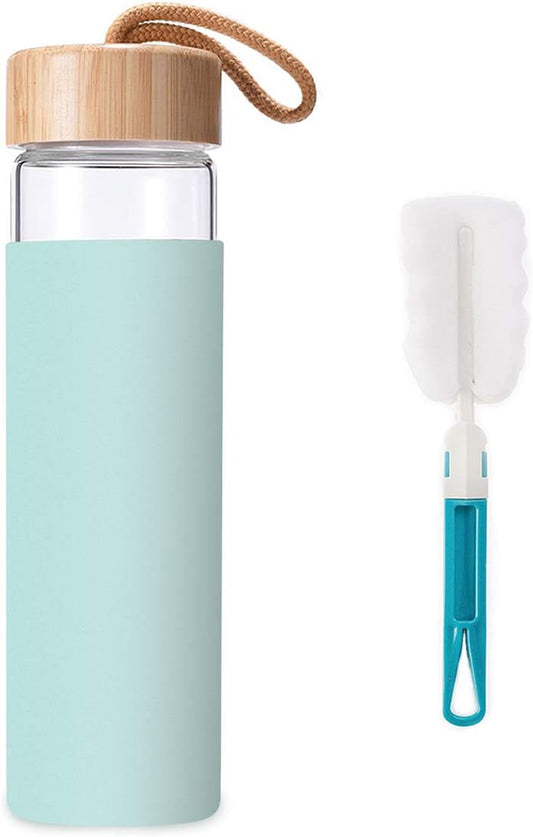 20 oz Yomious Borosilicate Glass Water Bottle with Bamboo Lid and Silicone Sleeve - BPA Free Glass Bottle for Women - Reusable Glass Drinking Bottle with Lids - Cute Glass Shaker Bottle