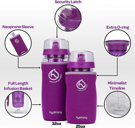 32 oz Hydracy Fruit Infuser Water Bottle with Insulating Sleeve, Time Marker & Infusion Rod - Deep Purple - Includes 27 Fruit Infused Water Recipes eBook