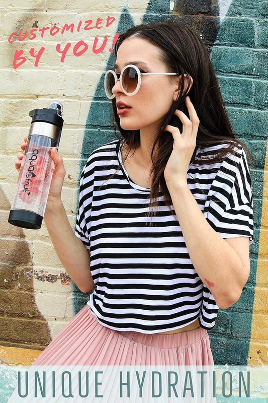 AquaFrut Bottom Loading Fruit Infuser Water Bottle - 24 OZ - BPA Free Tritan Plastic - Leak Proof - Infusion Recipe eBook - Black