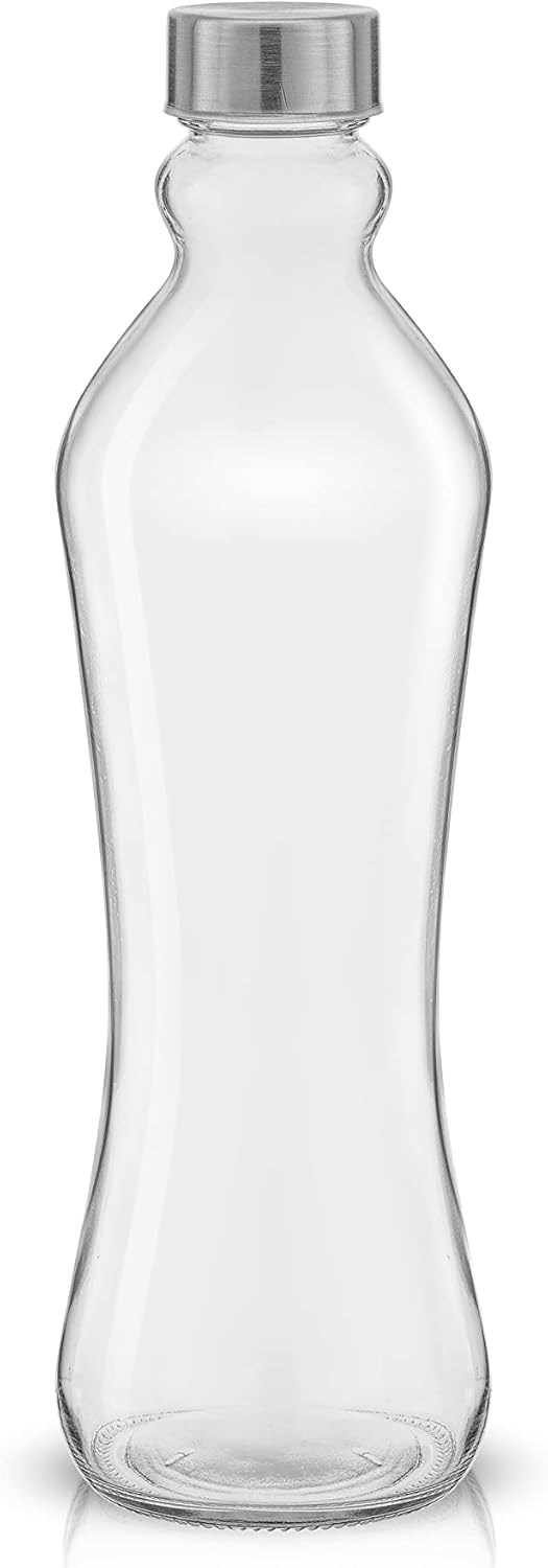 Clear Glass Water Bottles with Stainless Steel Lids - 2 Pack, 32 oz Leakproof Seal, 1 Liter Capacity for Juicing and Iced Tea