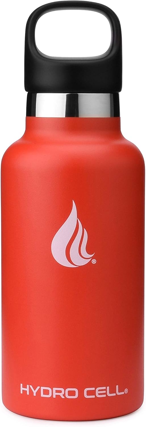 Red 16oz HYDRO CELL Stainless Steel Water Bottle with Straw, 2 Lids, Double Wall Vacuum Insulation - Hot/Cold Leak Proof Sports Design