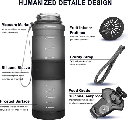 32 oz AquaFrut Fruit Infuser Water Bottle - BPA-Free Sports Bottle with Flip Top Lid, Leak Proof, Tritan Material - Includes Free Recipe eBook - Black