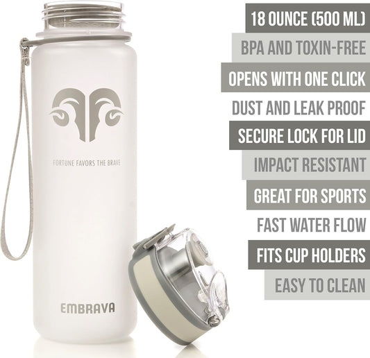 17oz Embrava Sports Water Bottle - Eco Friendly, BPA-Free Plastic - Ideal for Running, Gym, Yoga, Hiking - Fast Flow, 1-Click Open, Leak-proof Flip Top Lid