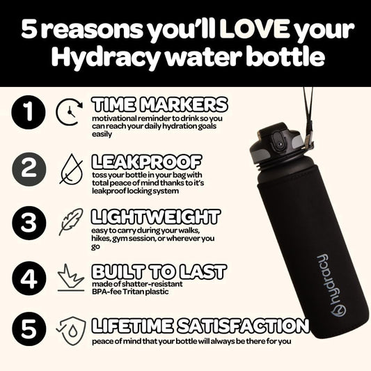 Large BPA Free Hydracy Water Bottle with Time Marker, No Sweat Sleeve, Fruit Infuser, Leak Proof Gym Bottle - Perfect for Fitness, Sports, Outdoors - Stay Hydrated with Times to Drink