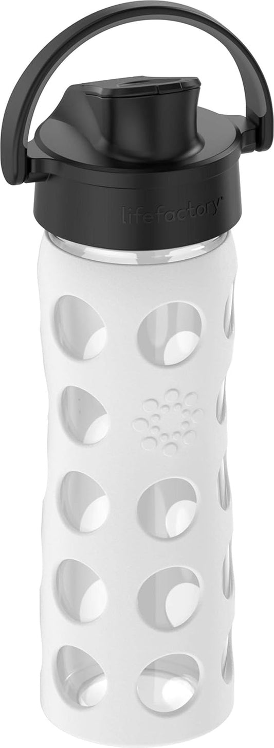 Lifefactory 16oz Glass Water Bottle w/ Active Flip Cap & Silicone Sleeve - Optic White