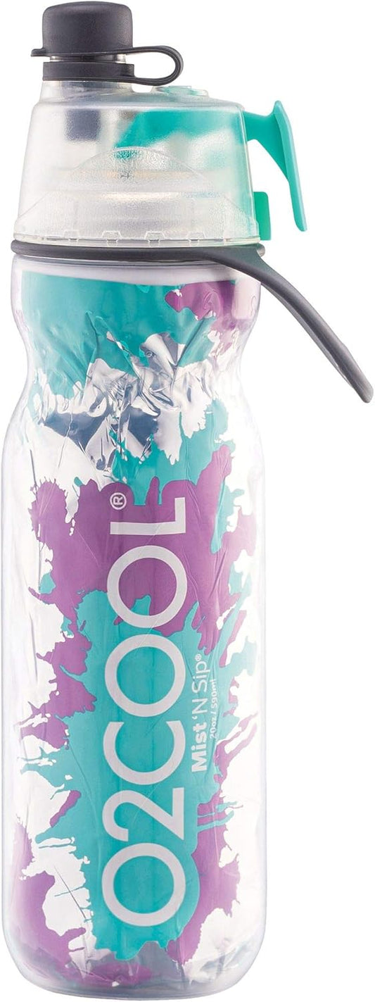 O2COOL Mist 'N Sip 2-in-1 Misting Water Bottle - Reusable 20 oz Sports Bottle with Leak-Proof Spout (Teal Purple Splash)