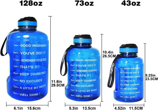 QuiFit Motivational Gallon Water Bottle with Straw, Time Marker, Handle - BPA Free Reusable Sport Jug for Fitness Outdoor Activities