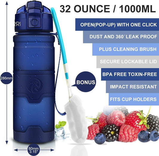 Eco-Friendly BPA-Free Sports Water Bottle with Leak-Proof Flip Top Lid - Ideal for Gym, Yoga, Running, Outdoors, Cycling, Camping - Brimma Premium Tritan Plastic Bottle