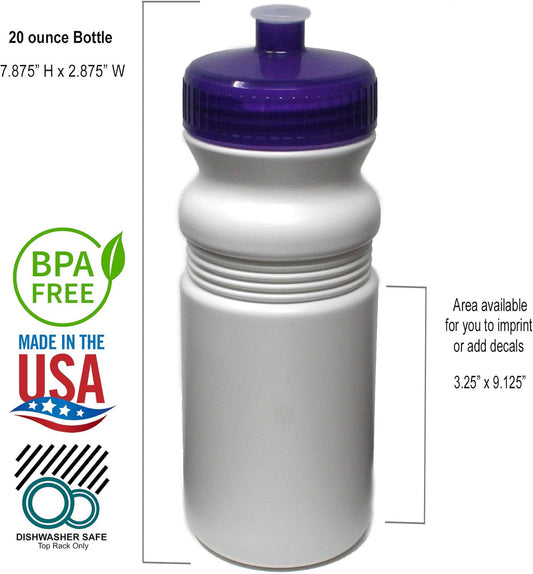 6-Pack Rolling Sands 20 oz Sports Water Bottles, BPA-Free, Dishwasher Safe, USA Made - White/Rainbow