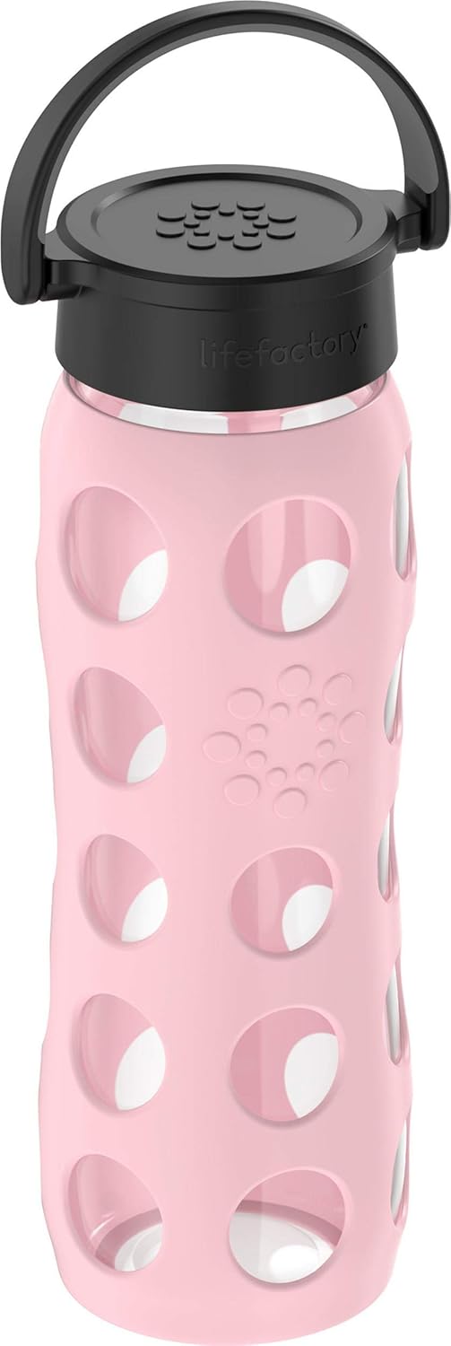 Lifefactory 22 oz Glass Water Bottle with Classic Cap, BPA-Free, Silicone Sleeve - Desert Rose Color