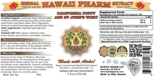 Organic California Poppy and St John's Wort Liquid Extract Tincture Supplement - 4 oz Bottle by Hawaii Pharm