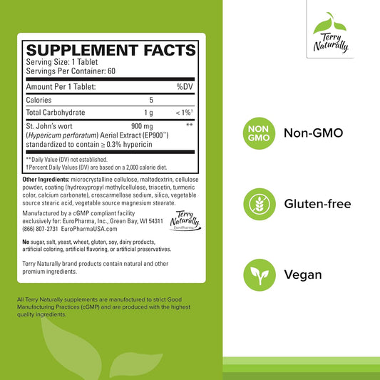 Terry Naturally St. John’s Wort 900 mg Tablets - Non-GMO, Vegan, Gluten Free - 60 Servings
