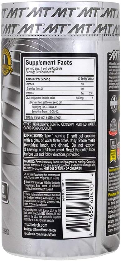MuscleTech Platinum Ultra Pure CLA Supplements - 800mg Per Serving - Anti-Catabolic Support - Stimulant-Free - 90 Pills