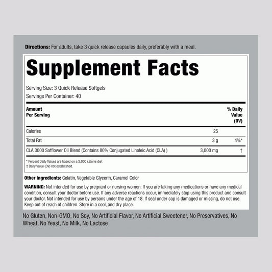 Piping Rock Conjugated Linoleic Acid (CLA) Supplements - 3000mg, 120 Softgels - Non-GMO, Gluten Free
