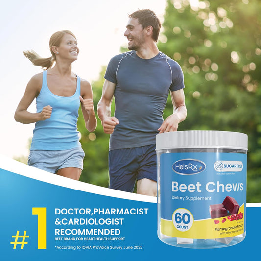 Beet Chews Supplement for Heart Health, Blood Pressure Support, and Energy - Sugar-Free Chews (60 Count)