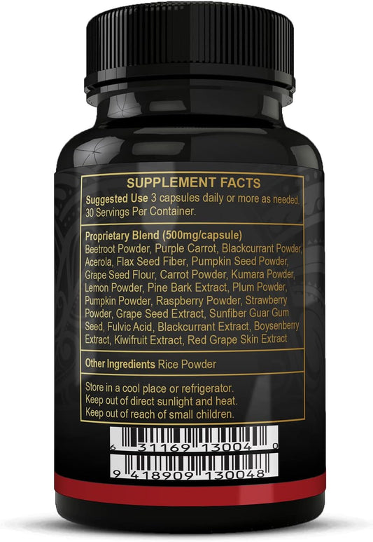 All-Natural New Zealand Red Superfood Energy Capsules with Antioxidants & Enzymes, 90 Capsules