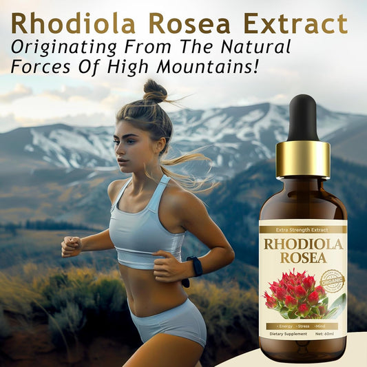 Organic Rhodiola Rosea Extract Tincture for Energy, Stress, Mood - Vegan Supplement 60ml