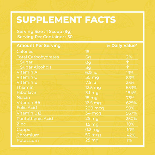 Organic Zesty Lemon Wheatgrass Energy Drink Mix with Antioxidants and Essential Vitamins, Zero Sugar Formula - 270g