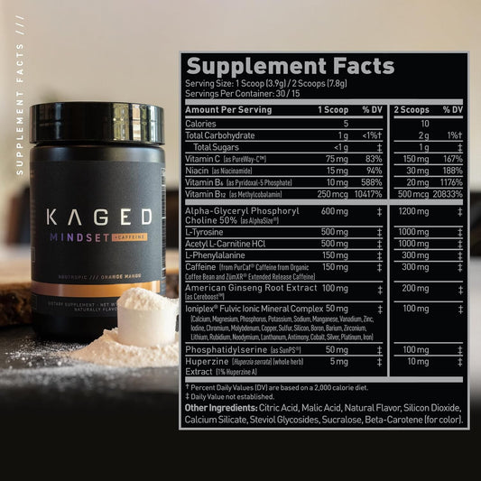 Pure Caffeine Nootropic Formula for Mindset, Focus, and Productivity - Enhances Memory, Mood, Clarity - 30 Servings