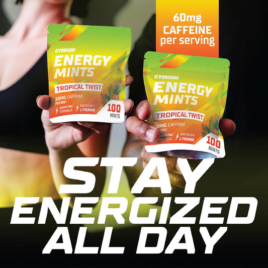 Tropical Twist GYMGUM Energy Mints - 60mg Caffeine, L-Theanine, B Vitamins - Sugar Free - 100 Count