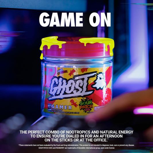 40 Servings GHOST Gamer Energy & Focus Formula, Sour Patch Kids Redberry Flavor - Vegan & Gluten-Free Nootropic with Natural Caffeine for Attention & Reaction Time