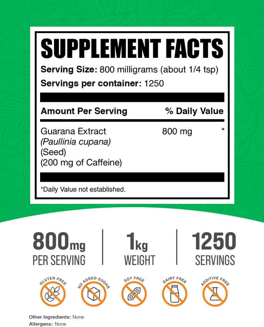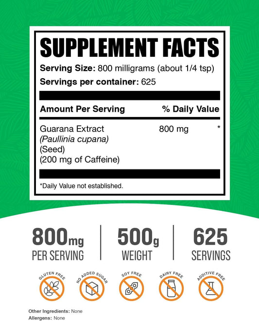 BulkSupplements.com Guarana Extract Powder - Pure Natural Caffeine Supplement, 800mg per Serving, Gluten Free - 500g (1.1 lbs) (1 Pack)Vendor:BulkSupplementsRegular price $148.43 AUDRegular priceUnit price / per-
