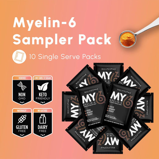 Nulifespan Myelin-6 Sampler Pack: Focus Supplement with AlphaSize for Brain Wellness, Memory & Cognitive Function, Orange Tangerine Flavor, 10 Single Serve Packs, Gluten-Free & Non-GMOVendor:NulifespanRegular price $144.39 AUDRegular priceUnit price / per-