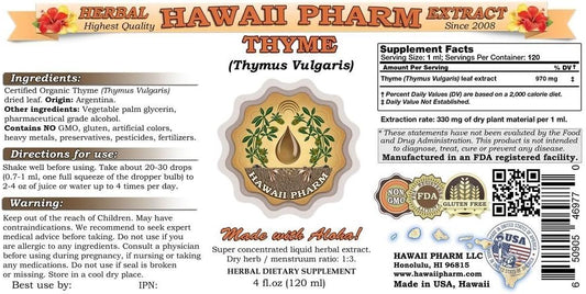 Organic Thyme Liquid Extract Tincture 32 fl.oz - Herbal Supplement by Hawaii Pharm, Made in USA