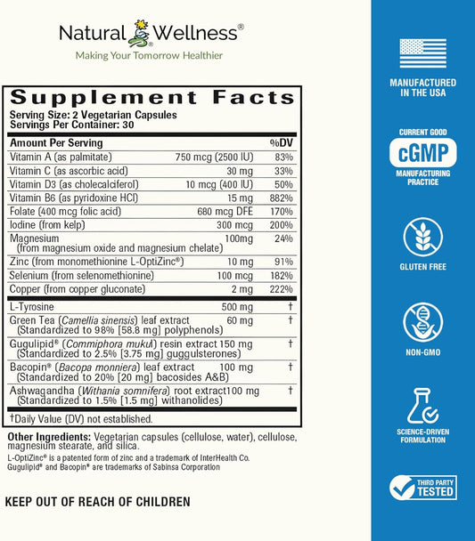 Thyroid Support Supplement - Boosts Thyroid Health, Energy, Metabolism - 60 Veg Caps, 1-Month Supply