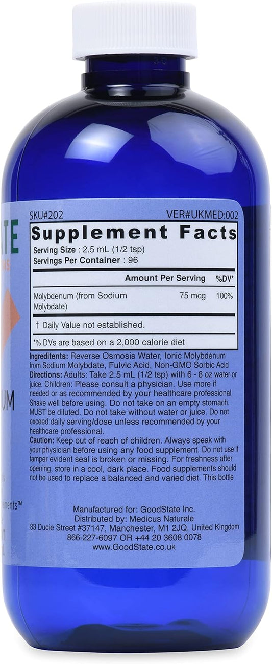 Liquid Ionic Molybdenum Supplement - 96 Servings, 2mg Elemental + 2mg Fulvic Acid - 8 fl oz BottleVendor:Good StateRegular price $119.69 AUDRegular priceUnit price / per-