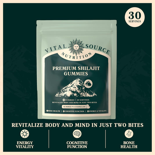 Organic Himalayan Shilajit Gummies for Bone, Brain, Energy & Vitality - Summer Watermelon Flavor - Vegan, Gluten-Free & Halal - 60 GummiesVendor:Vital Source NutritionRegular price $107.34 AUDRegular priceUnit price / per-