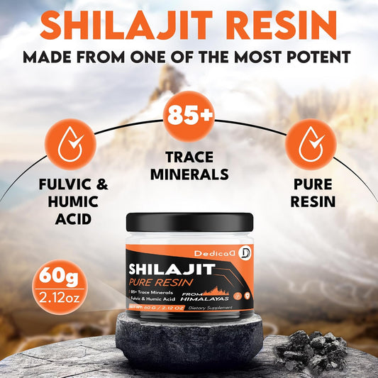 60g DEDICAD Shilajit Pure Organic Resin - 100 Servings, Fulvic Acid, 85+ Minerals - Body, Heart, Brain, Immune Support