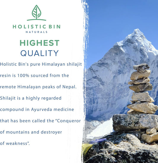 Holistic Bin Black Platinum Shilajit Resin | Purest Himalayan Resin with Fulvic & Humic Acid | Easy to Mix | Includes Serving Spoon